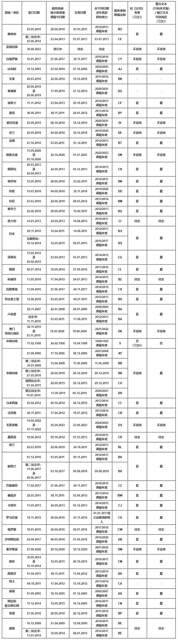 稅收協(xié)定簽訂國家/地區(qū)