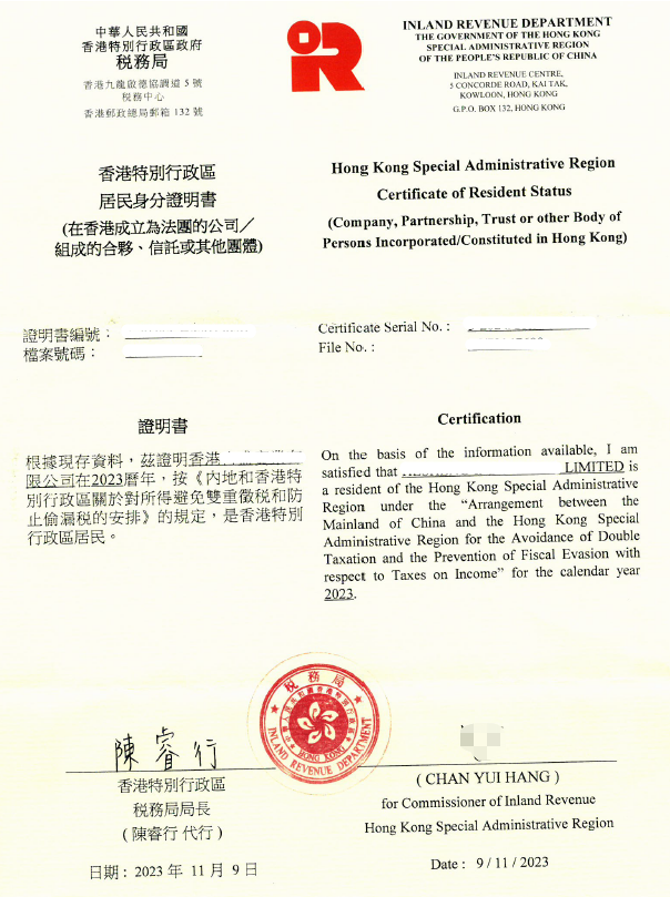 RICHFUL瑞豐亦可以協(xié)助申請(qǐng)香港稅務(wù)居民身分證明書以及中港稅收協(xié)定優(yōu)惠的申請(qǐng)服務(wù):